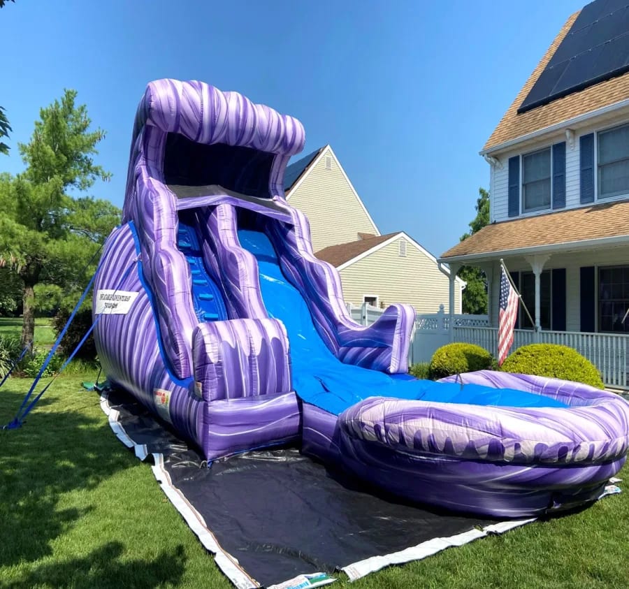 Reserve the 18' Purple People Eater today. We deliver across Burlington County, Camden County, Mercer County. 🚚 Book early for weekend dates and summer peak times. Flexible rental durations and professional setup make planning simple.
